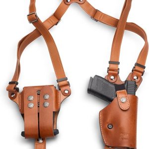 Universal Leather Shoulder Holster Compatible with Glock 17/19, 1911, Taurus G2C/G3C, M&P 9, Sig P220/P226, 92FS, and More, Vertical Concealed Holster with Double Mag Holster, Right Hand