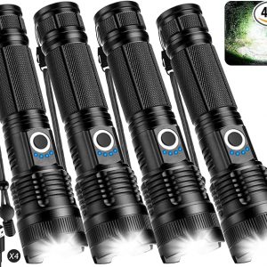 Flashlights Rechargeable LED High Lumens – 4 Pack 90,000LM Super Bright Flashlight, Adjustable Powerful Flash Light with 5 Modes, Waterproof Handheld Flashlight for Home, Camping (4)