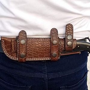 Ottoza Tracker Knife with Horizontal Carry Leather Sheath and Ram Horn Handle – Damascus Fixed Blade Hunting Knife for Survival and Outdoor Use 262