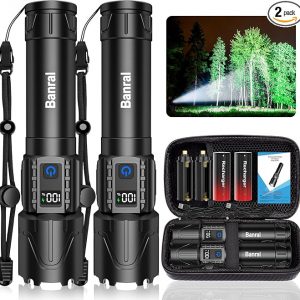 Rechargeable Flashlights High Lumens – Super Bright LED Tactical Flash Light, Powerful Waterproof Handheld USB C Flashlight for Camping,Emergencies,Home,5 Modes,Zoomable (2, Black)