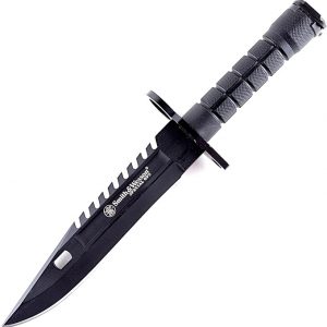 Smith & Wesson SW3B 12.8in S.S. Fixed Blade Knife with 7.8in Bowie Blade with Notched Spine and Nylon Fiber Handle for Outdoor, Tactical, Survival and EDC