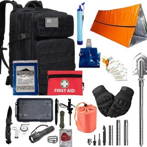 Earthquake Kit – 72 HRS Essential Emergency Survival Kit, Heavy Duty 72 Hour Bug Out Bag Survival Kit for Earthquake, Hurricane, Tsunami – Include Emergency First Aid Kit, Water, Food (Black 3P)