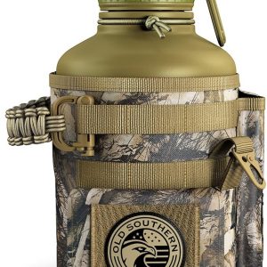 Combat Canteen – 64oz Insulated Water Bottle with Paracord Handle, Stainless Steel Water Jug with Rugged Pockets for Keys, Wallet & Phone – Woodland Camo