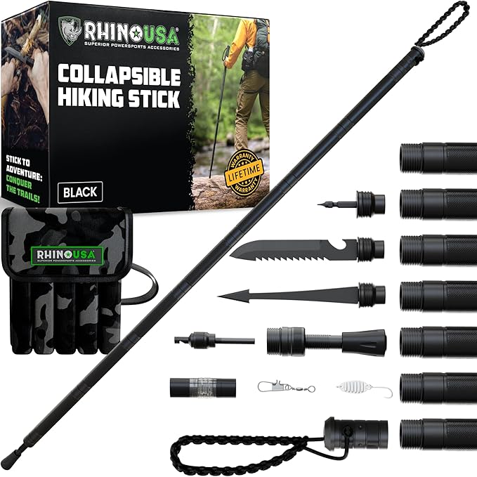 - Convenient Camo Carrying Pouch: The included camo carrying pouch allows for easy and compact storage, making it simple to pack away and carry your tactical hiking stick when not in use.
