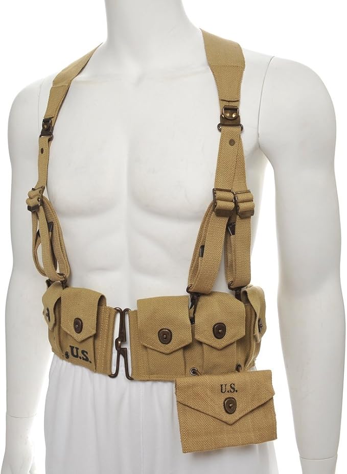 / US WW2 M1923 Cartridge Belt with Suspenders & First Aid Kit Khaki Marked JT&L 1942