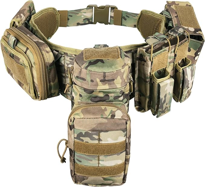 - 【BATTLE BELT 5 PEICE GEAR SET】 The package is made of a Constructed by high quality and durable durable outer molle belt, inner belt, and a dump/carry pouch,a bottle bag,a ammunition box,double mag pouch,a multipurpose bag, The 5-in-1 package means big savings!